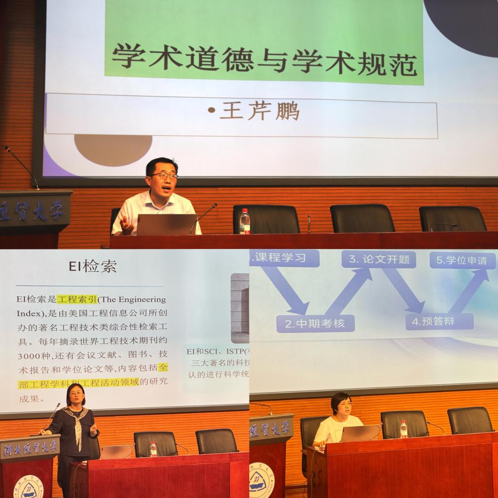 副院长王芹鹏通过“典型案例警示”“政策条文解读”的方式,展开学术规范与科研伦理专题讲解,告知新生学术研究的“红线与底线”,让每位同学将“诚信”二字刻在心里。紧接着,导师组组长贺萍开展“文献资源利用方法及人才培养方案解读”专题指导。她系统介绍了学校文献资源体系,同时清晰解读了培养目标和课程模块设置,帮助新生为科研起步奠基,助力新生明确学业规划方向。学科秘书曹洋开展学籍管理、培养管理、奖助体系等制度政策专题解读,并进行了现场答疑。