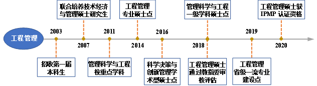 河北经贸大学工程管理专业2003年开始招收第一届本科生,2014年获工程管理硕士专业学位授权,2018年获管理科学与工程硕士学位授权,并通过工程管理硕士专业审核评估,2019年被评为河北省一流专业建设点,2020年成为“工程管理硕士专业学位与IPMP认证合作培养单位”,2023年通过河北省一流专业验收。