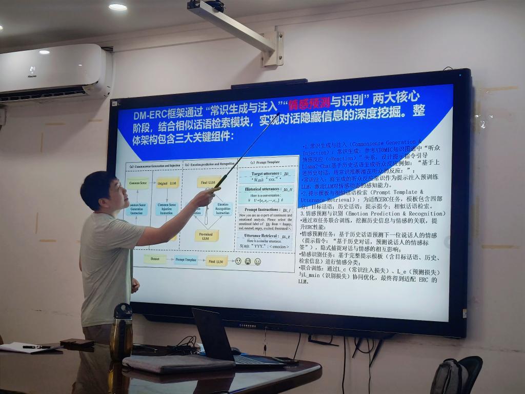 9月8日下午,我院勾智楠博士在一办5楼西会议室作题为“基于生成式预训练模型的情绪感知研究”的专题报告。报告由数据科学与大数据技术系主任魏若岩副教授主持,部分教师及研究生参加。