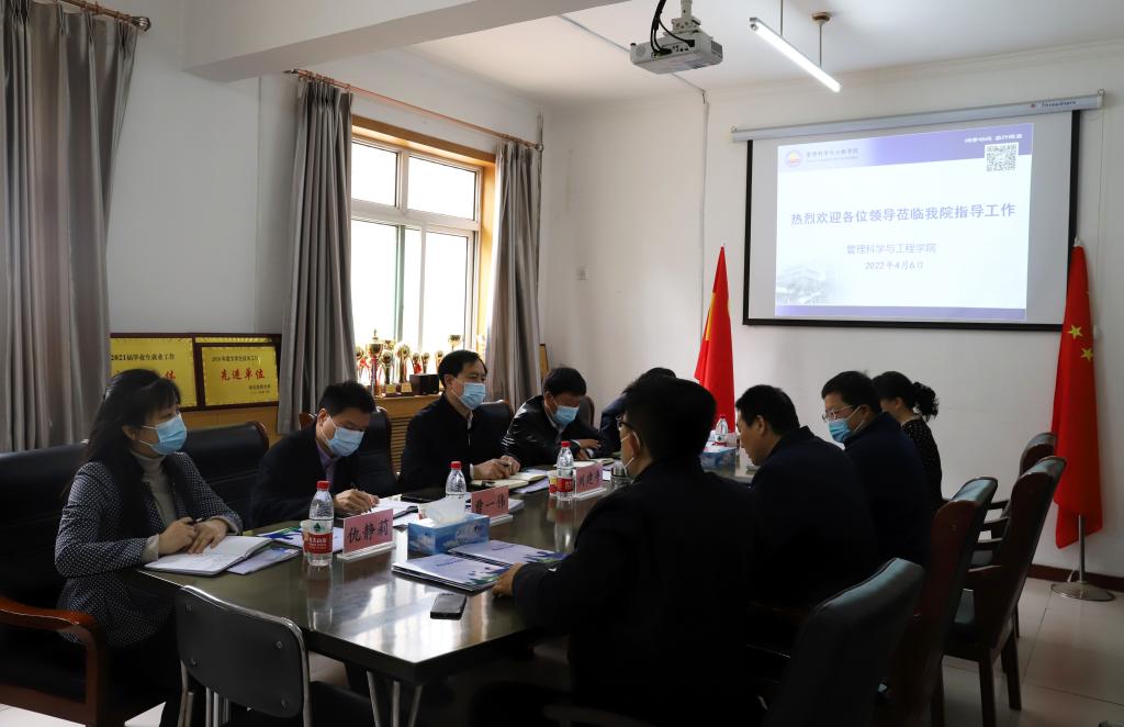 4月6日上午,校党委副书记刘建平带队到管理科学与工程学院就辅导员队伍建设、职业愿景引领行动及太阳集团进行专项调研督导,学生工作部、就业指导服务中心相关人员陪同。