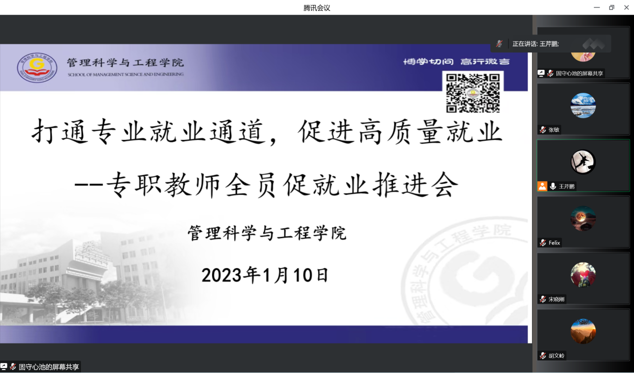 1月10日下午,我院通过线上方式召开了“打通专业就业通道,促进高质量就业---专职教师全员促就业推进会”。会议由副院长王芹鹏主持,院长祁红梅、各系主任及学院骨干教师参加。