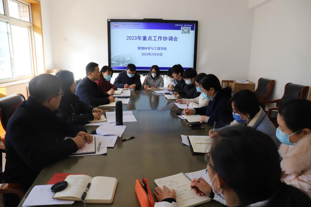2月20日下午,我院在会议室召开2023年度重点工作协调会,学院领导白玉祥、祁红梅、李丽、王芹鹏出席,学院各系主任、各科室负责同志和研究生导师组组长参加。会议由学院院长祁红梅主持。