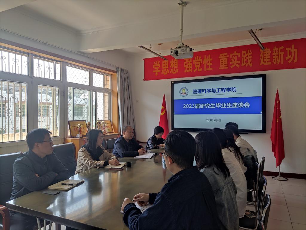 为进一步优化研究生培养、管理措施,提升服务水平,5月8日,学院党委书记王剑彪、院长祁红梅、副院长王芹鹏、研究生辅导员曹洋以及毕业生代表参加座谈会。