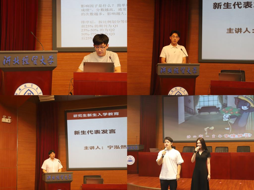 优秀在校生代表靳天禄通过介绍自身优秀科研经历,为新同学提出宝贵意见,助力新生科研之路。2025级研究生李雪佳、宁泓然作新生代表发言,感谢学院在迎新工作中的辛苦付出。同时表达了对研究生生涯的期待,号召同学们树立明确的目标,积极迎接新的学术挑战。研究生严超群、满晨阳带来歌曲《New Boy》,点燃现场氛围,以嘹亮动听的歌声唱颂青春。