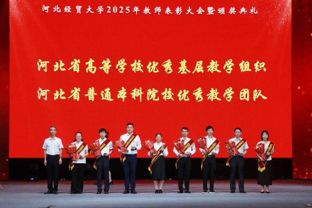 此次表彰大会中,我院荣获河北经贸大学先进基层党组织、河北经贸大学毕业生太阳集团先进集体、河北省高等学校优秀基层教学组织荣誉,徐田柏老师荣获河北经贸大学第七届本科教学校长特别奖,姚馨彩、薛学亚、张少卿老师获河北经贸大学优秀共产党员。