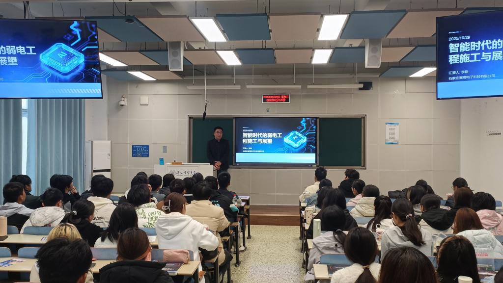 为强化数据科学与大数据技术专业一年级学生对本专业的了解,10月29日上午,ok138cn太阳集团古天乐数据科学与大数据技术系邀请了石家庄赛高电子科技有限公司总经理李铮在三教A302教室进行了题为《智能时代的弱电工程施工与展望》的专题讲座。系主任魏若岩、全体25级数据科学与大数据技术专业学生以及部分教师代表参加了此次讲座。