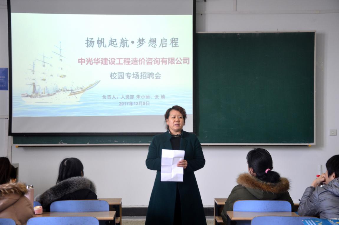 12月8日下午,管理科学与工程学院在A204教室举办“中光华建设工程造价咨询有限公司”专场招聘会。学院党委副书记张晓军、学院就业指导教师王芳和工程管理系副主任宋晓刚共同出席本次招聘会。