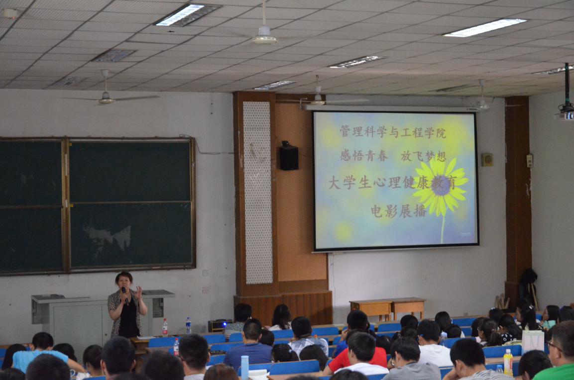 为促进学院学生身心健康发展,普及心理健康知识,5月26日,管理科学与工程学院在C225开展心理健康电影展播活动,学院党委副书记张晓军及全体辅导员老师出席了此次活动,学院全体学生参加了此次活动。