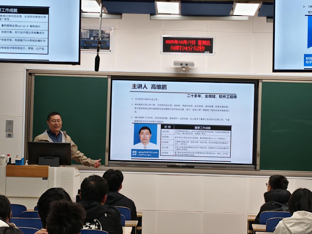10月17日,2025级软件工程专业别邀请了石家庄卓锋信息科技有限公司技术总监高维鹏工程师走进大一新生《专业导论》课堂,为同学们带来了一场关于“迈入计算机软件行业”的精彩讲座。